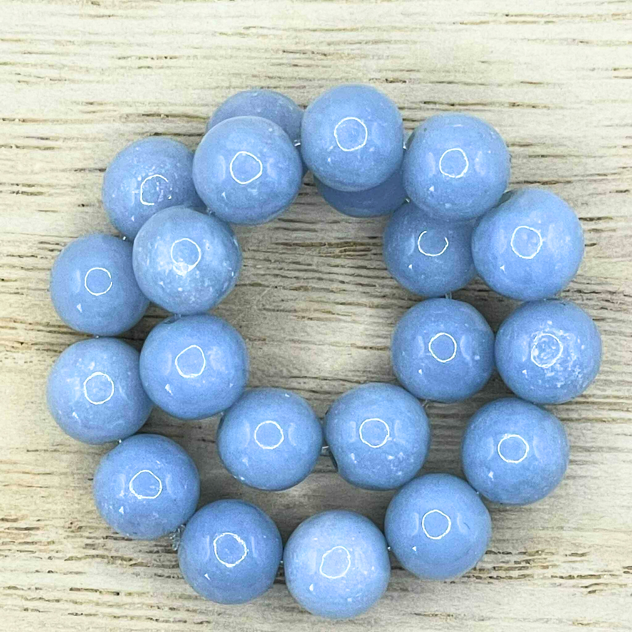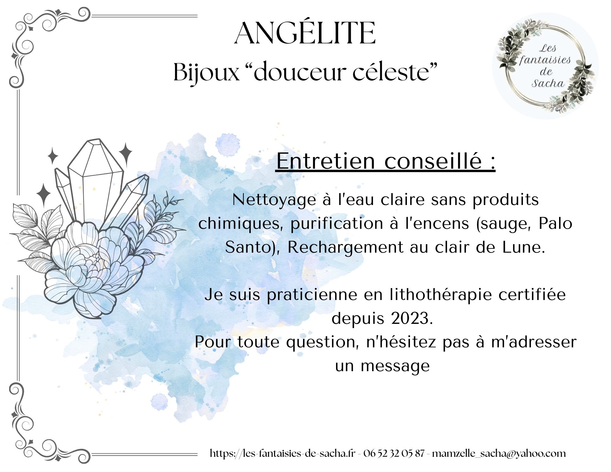 • L’Angelite est une pierre douce et apaisante, reconnue pour ses vertus de paix intérieure et de communication spirituelle.