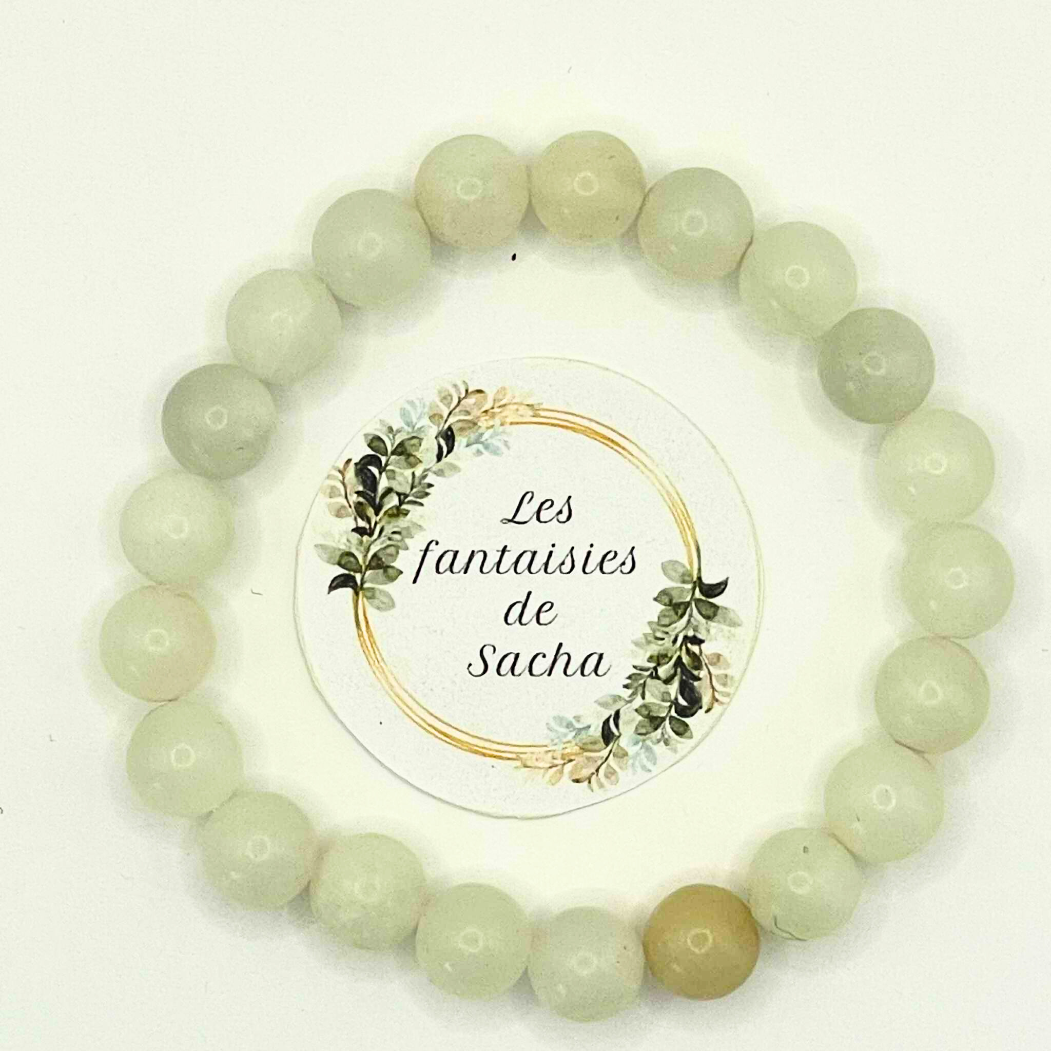 Ce « bracelet essentiel » de la boutique Les fantaisies de Sacha est composé de perles de 8 mm en pierre naturelle de jade vert. Il est monté sur un fil élastique résistant, ce qui lui permet de s’adapter à la plupart des poignets pou un confort optimal. (taille de bracelet standard entre 16 et 18 cm, possibilité d’ajuster sur simple demande via le formulaire de contact).