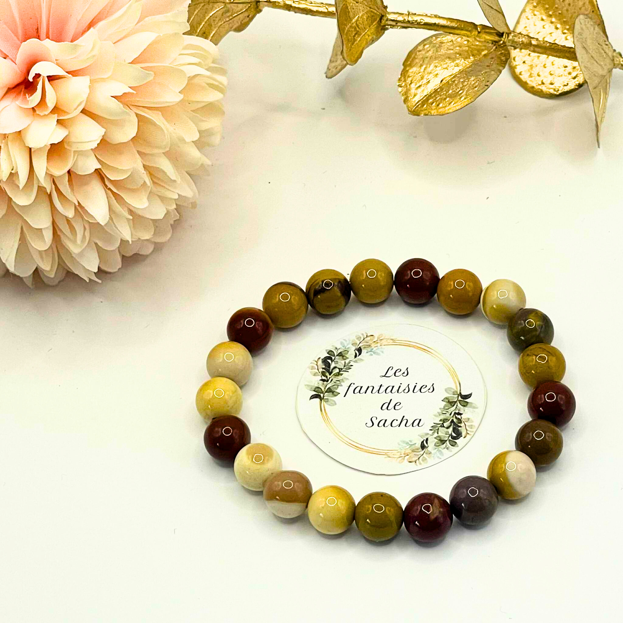 Ce « bracelet essentiel » de la boutique Les fantaisies de Sacha est composé de perles de 8 mm en pierre naturelle de jaspe mokaïte. Il est monté sur un fil élastique résistant, cequi lui permet de s’adapter à la plupart des poignets pour un confort optimal. (taille de bracelet standard entre 16 et 18 cm, possibilité d’ajuster sur simple demande via le formulaire de contact).