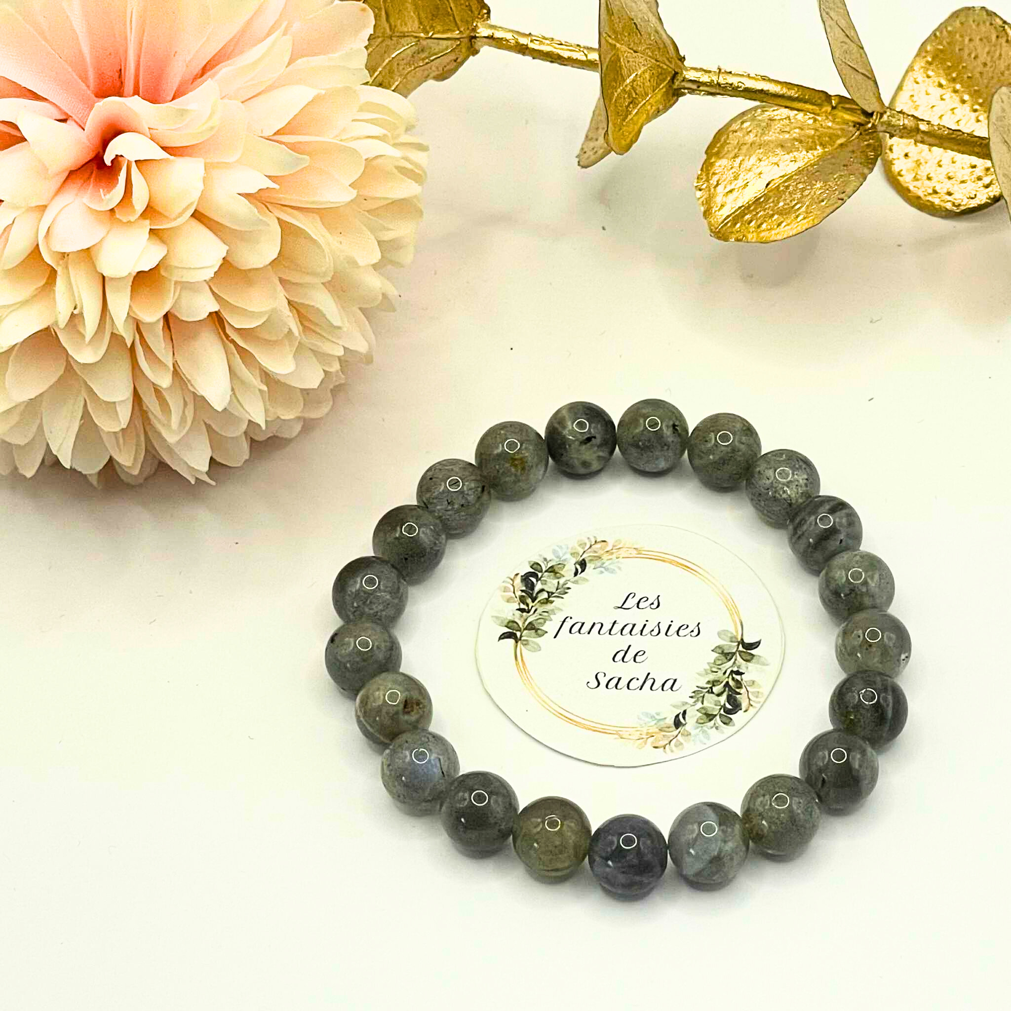 Ce « bracelet essentiel » de la boutique Les fantaisies de Sacha est composé de perles de 8 mm en pierre naturelle de labradorite. Il est monté sur un fil élastique résistant, ce qui lui permet de s’adapter à la plupart des poignets pour un confort optimal. (taille de bracelet standard entre 16 et 18 cm, possibilité d’ajuster sur simple demande via le formulaire de contact).