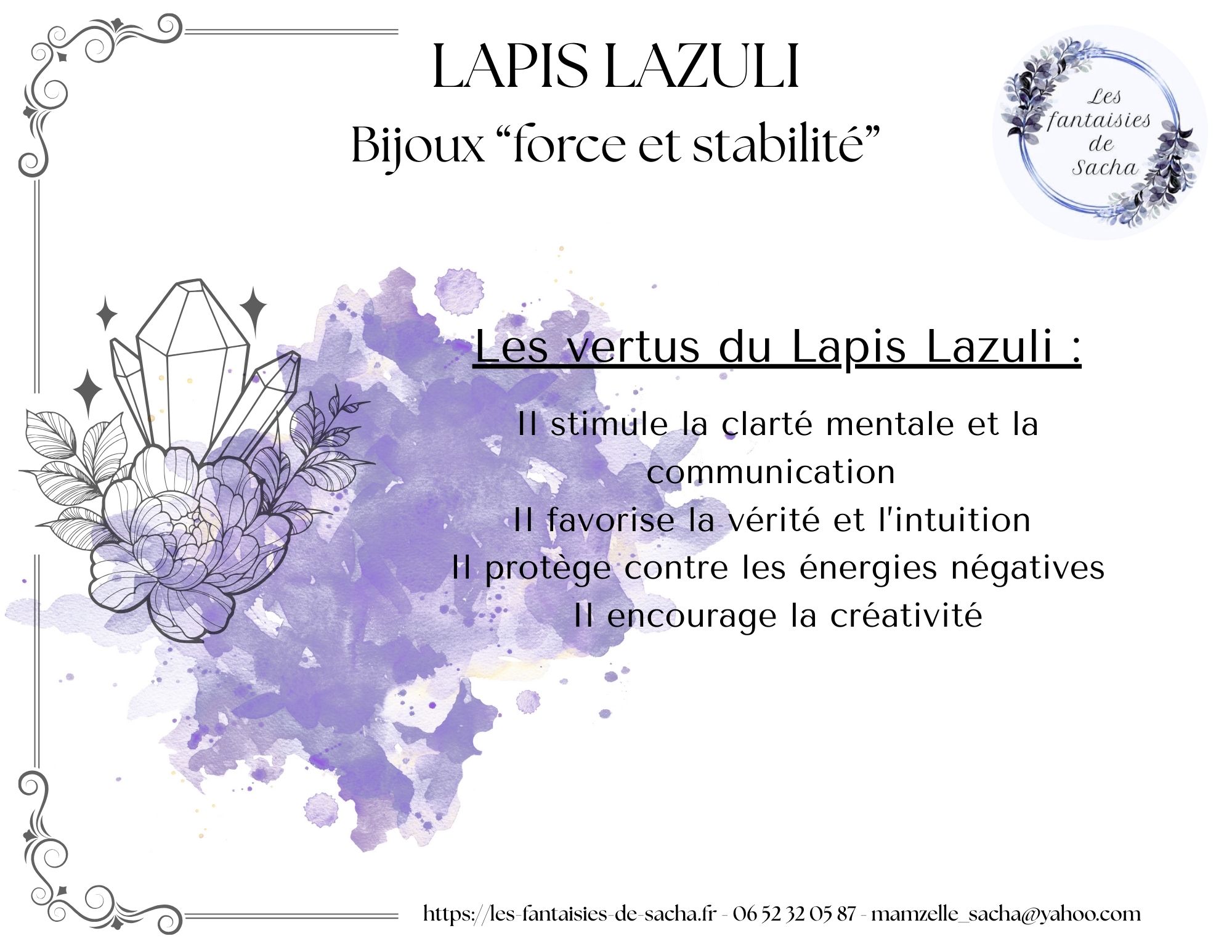 • Le Lapis Lazuli est une pierre de sagesse, de vérité et d’expression de soi.