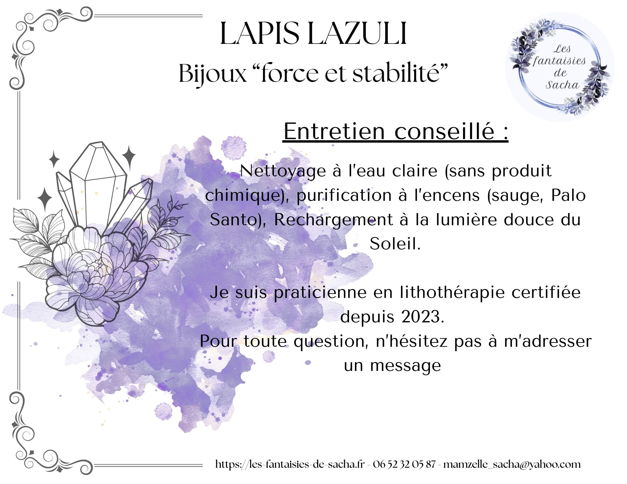 Retrouvez la fiche détaillée de la pierre naturelle de lapis lazuli en cliquant ici !