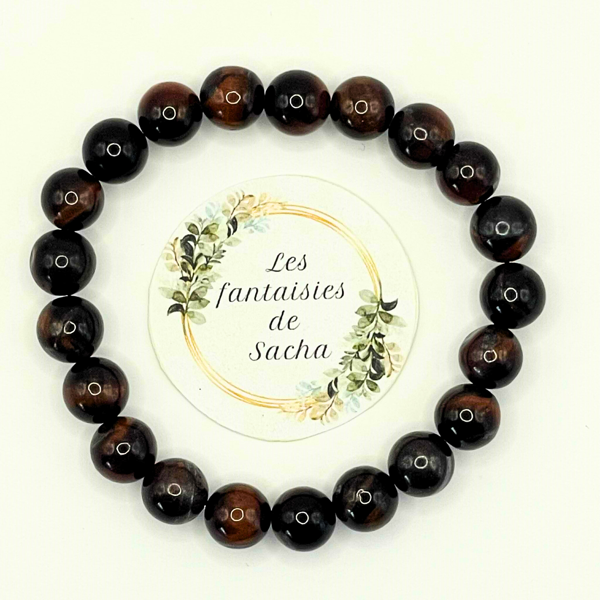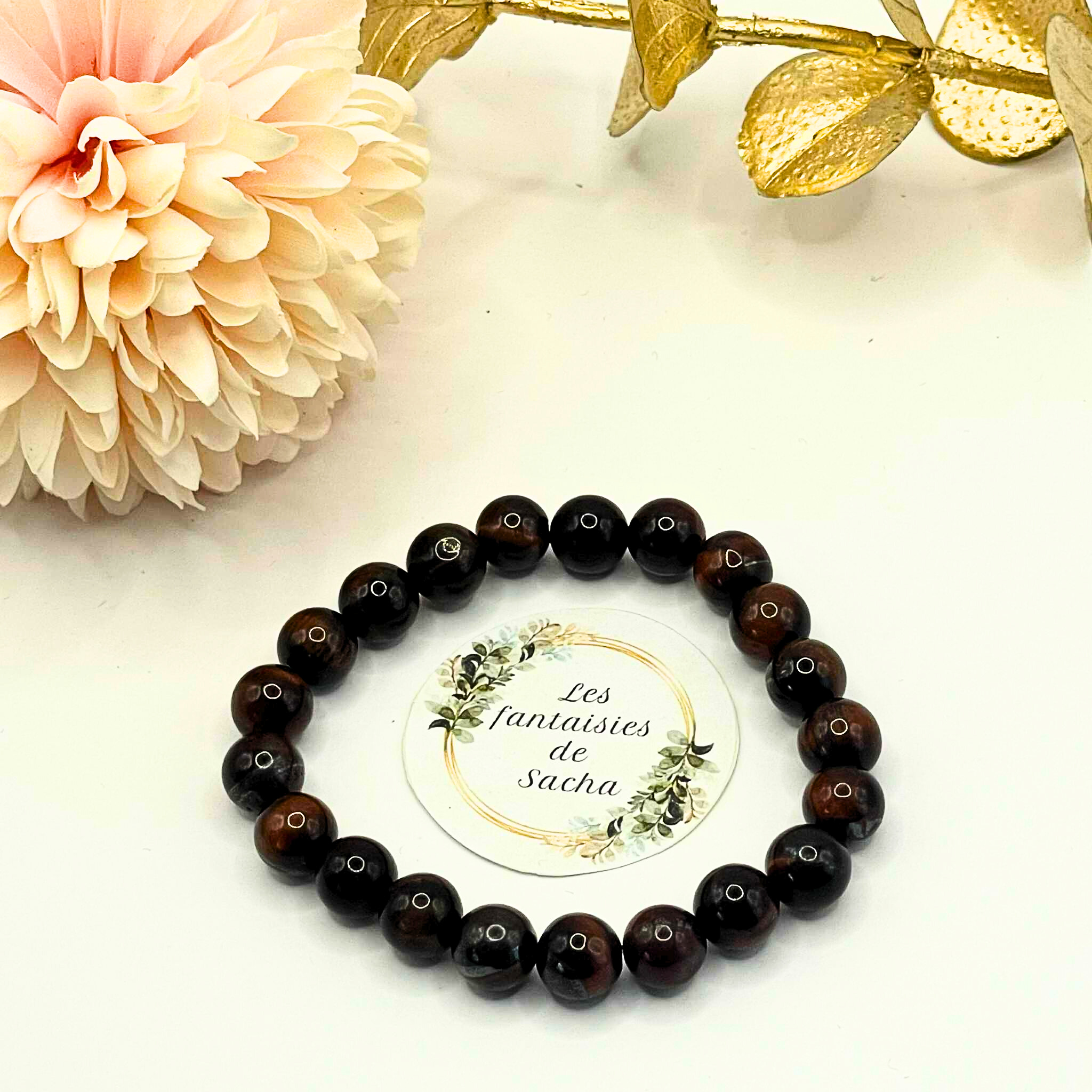 Ce « bracelet classique » de la boutique Les fantaisies de Sacha est composé de perles de 8 mm en pierre naturelle d’oeil de taureau . Il est monté sur un fil élastique résistant, ce qui lui permet de s’adapter à la plupart des poignets pour un confort optimal. taille de bracelet standard entre 16 en 18 cm. (taille de bracelet standard entre 16 et 18 cm, possibilité d’ajuster sur simple demande via le formulaire de contact).