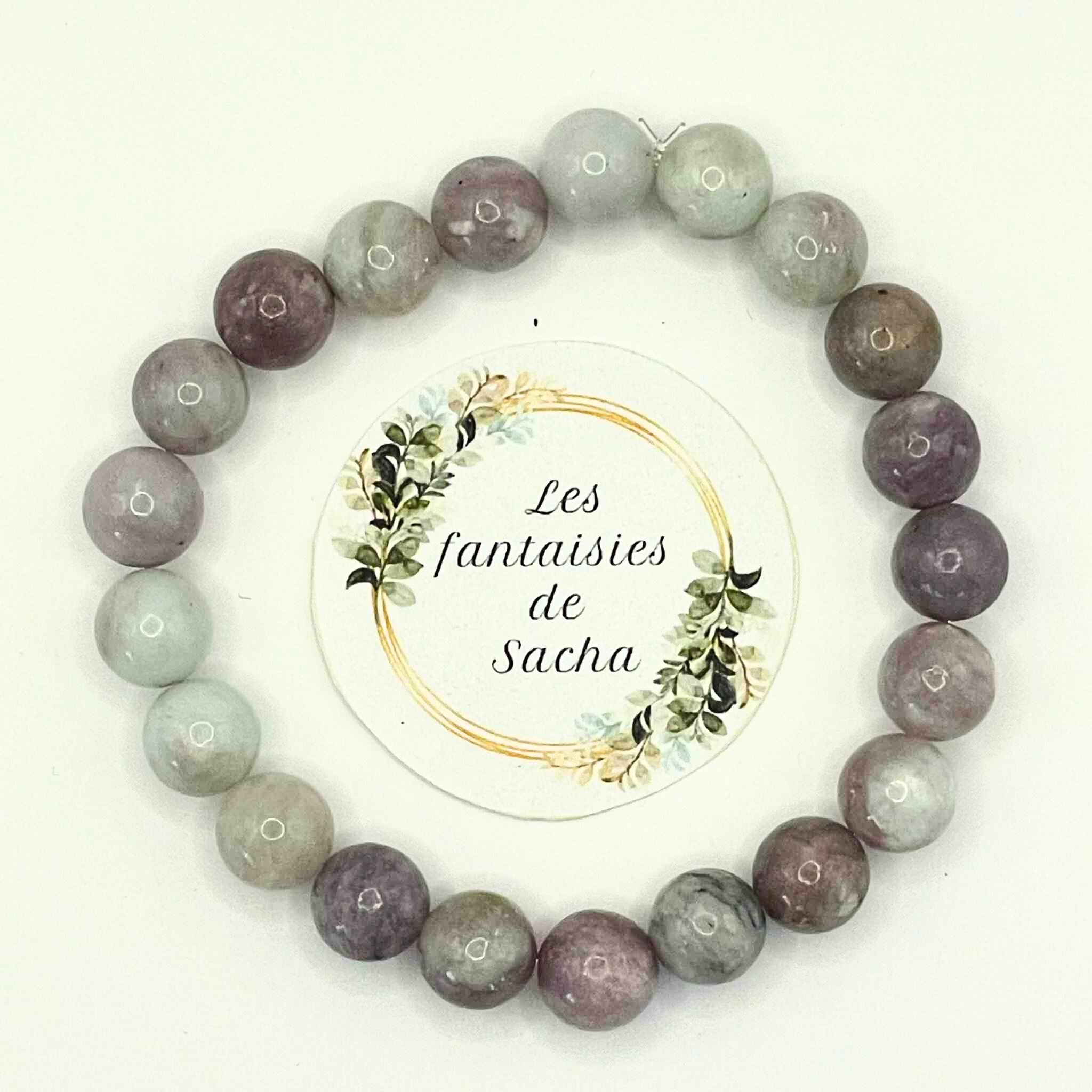 Ce « bracelet essentiel » de la boutique Les fantaisies de Sacha est composé de perles de 8 mm en pierre naturelle de tourmaline violette. Il est monté sur un fil élastique résistant, ce qui lui permet de s’adapter à la plupart ds poignets pour un confort optimal. (taille de bracelet standrad entre 16 et 18 cm, possibilité d’ajuster sur simple demande via le formulaire de contact).